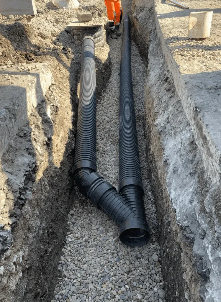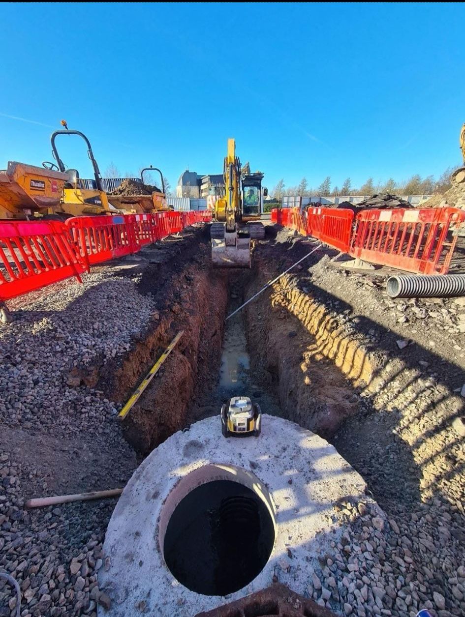We repair damaged or failing underground drainage systems for commercial sites. Our services include excavation, pipe replacement, chamber access, and reinstatement — all completed to engineering standards.